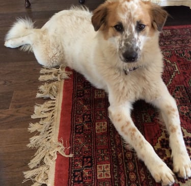 We’ve had three wonderful rescue dogs. Tiger, a goofy Dutch Shepherd, Princess, a Samoyed, true to her name, and our current girl, Suzy. She’s an Australian Shepherd at the front and a mystery at the back. She’s from Texas and fills our days with long walks and dog love. She's also a shedder and fills our socks, clothes, and house with dog fur. You’ll hear more about her exploits later. She had us at the freckles. (See her 'daddy long legs' picture)